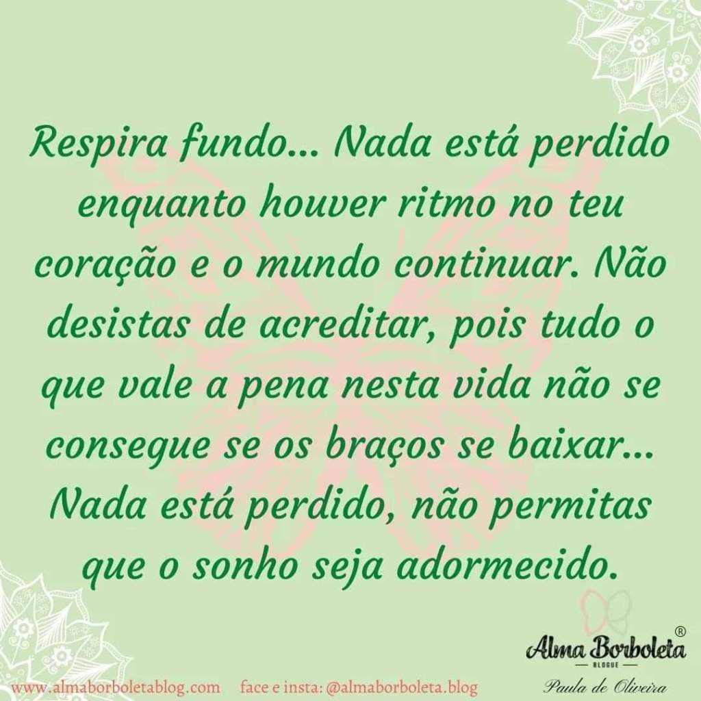 Pensamento Motivo-Inspiracional 21 de May de 2022 ~ Paula de Oliveira Partilhar isto: Share on X (Opens in new window) X Share on Facebook (Opens in new window) Facebook Like Loading... Related Published by Paula de Oliveira Autora de "Alma Borboleta" View all posts by Paula de Oliveira