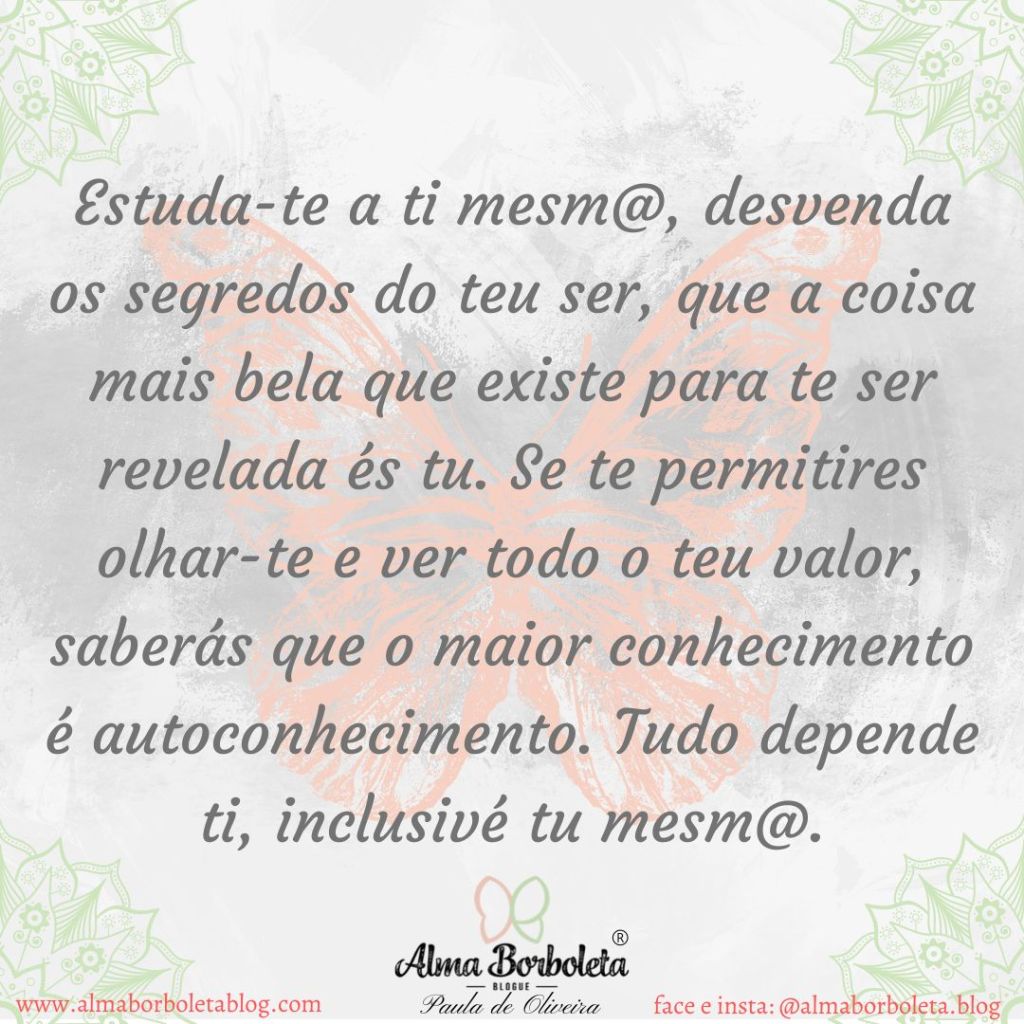 Estuda-te a Ti Mesm@ (1) 28 de July de 2022 ~ Paula de Oliveira Partilhar isto: Share on X (Opens in new window) X Share on Facebook (Opens in new window) Facebook Like Loading... Related Published by Paula de Oliveira Autora de "Alma Borboleta" View all posts by Paula de Oliveira