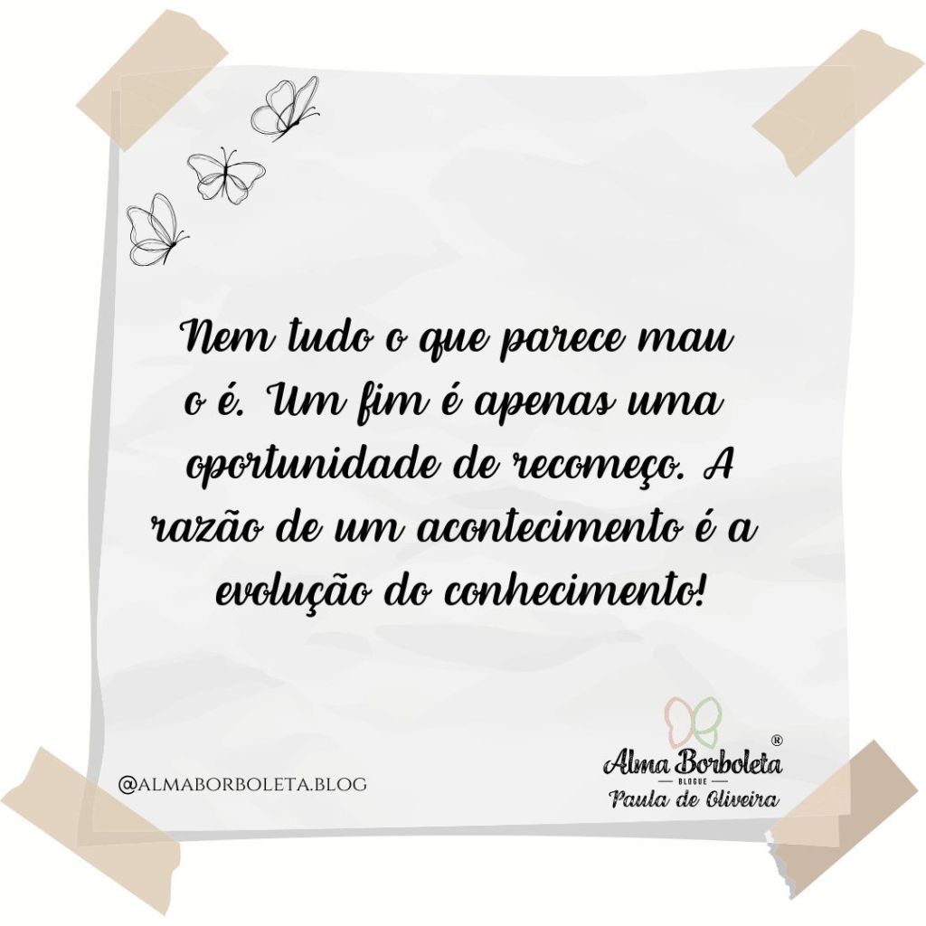 Ciclos vêm e ciclos vão. Não fiques apegad@ ao passado, abraça a mudança. Não tenhas medo de um fim ou de um início, nada se vai, pois tudo se transforma. Está tudo certo em deixar ir, mais estará para vir. Não há nada de errado no desconhecido, apenas ainda não lhe leste o manual para saber como irá funcionar. Deixa para trás, segue em frente. Tu controlas o teu destino.
