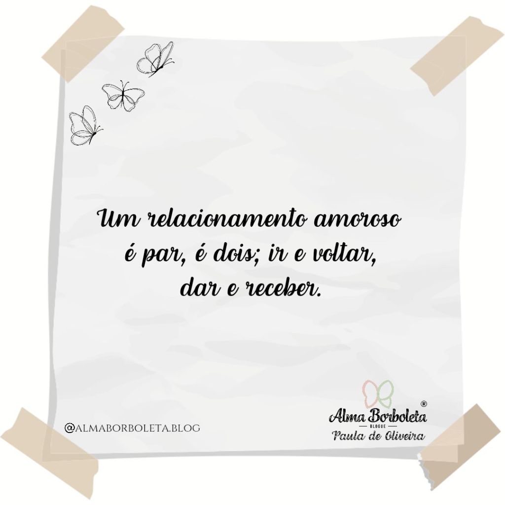 Por vezes, amamos, e muito, mas é preciso desistir quando solução já não há, quando um amor rema sozinho, só de um lado do barco. Um relacionamento amoroso é par, é dois; ir e voltar, dar e receber.
